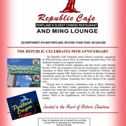 The reviews from customers like Kirsten T., Neil S., W D., Michael R., Monica C., and Jim F. showcase the positive experiences diners have had at Republic Cafe. Whether you're a fan of traditional Chinese cuisine or simply looking to explore new flavors, Republic Cafe's diverse menu and excellent service make it a must-visit spot in Portland's Chinatown.